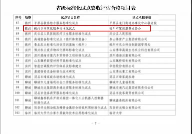德州市家庭服務業(yè)協(xié)會巾幗家政服務標準化試點項目通過省級驗收