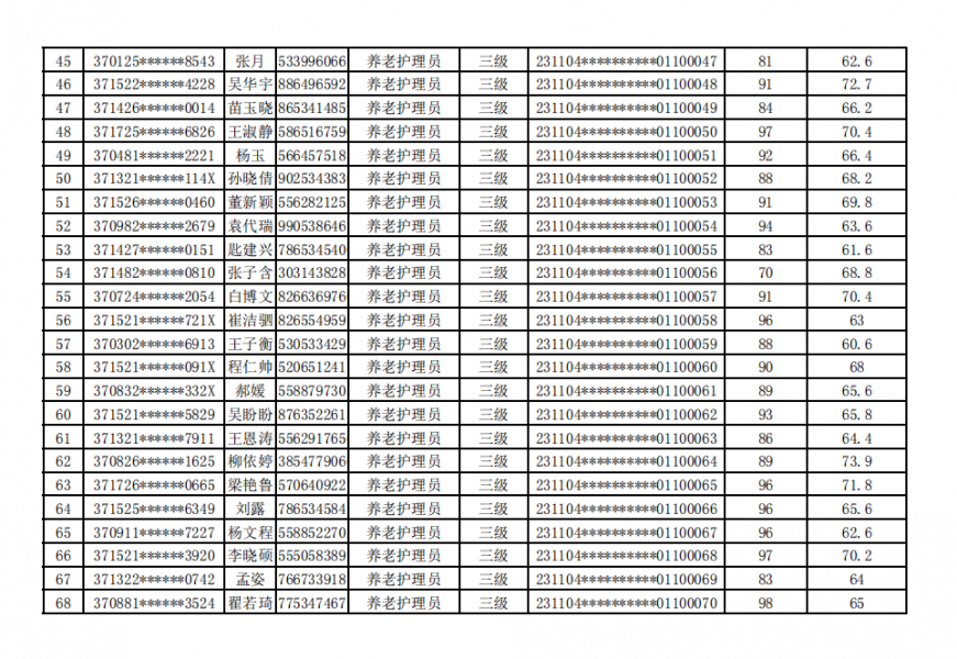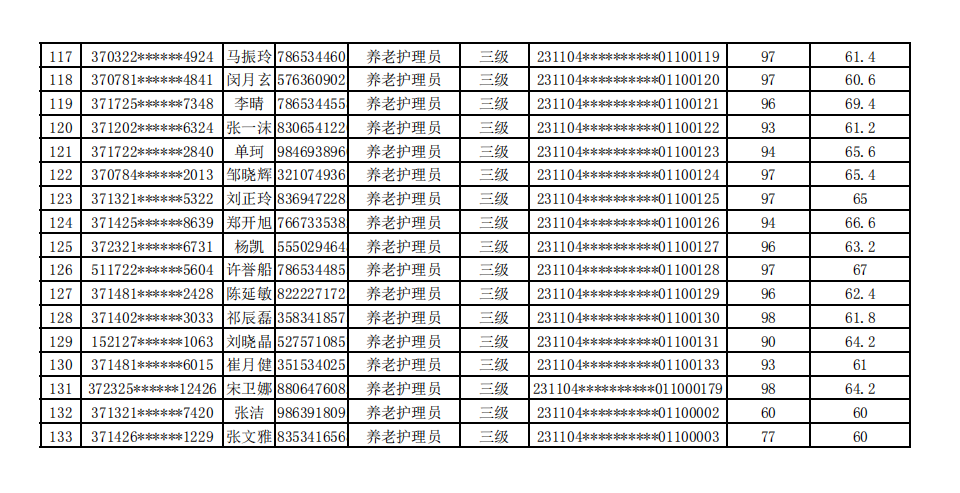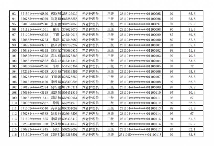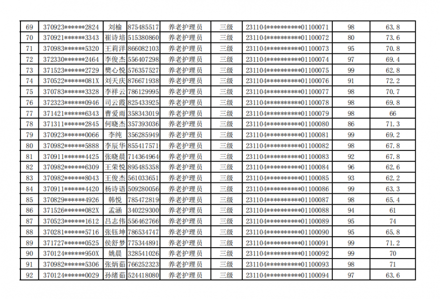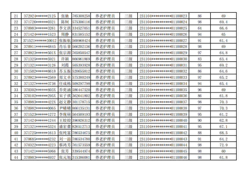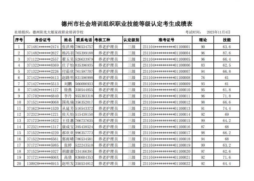 德州陽光大姐家政職業(yè)培訓學校20231104期社會職業(yè)技能等級認定成績公示