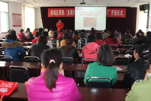 為落實德州市人民政府關(guān)于《德州市殘疾人“整體趕平均、共同奔小康”行動方案》,促進殘疾人就業(yè)創(chuàng)業(yè),德城區(qū)殘疾人聯(lián)合會舉辦,由德州陽光大姐家政職業(yè)培訓(xùn)學(xué)校承辦的德城區(qū)“首屆殘疾人家政服務(wù)技能培訓(xùn)班”于11月5日上午舉行了開班儀式。