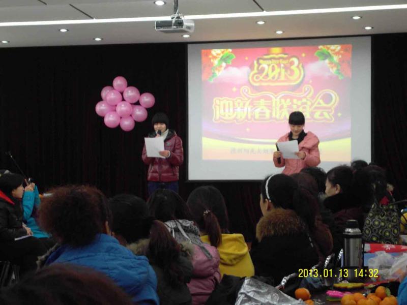 2013年1月13日,陽光大姐新春聯(lián)誼會在三樓多功能廳舉行,大姐們以健美操、太極劍、京劇、手語舞、合唱、情景劇等形式自編自演了節(jié)目,展示了大姐們的風采,共同度過了歡樂節(jié)日。