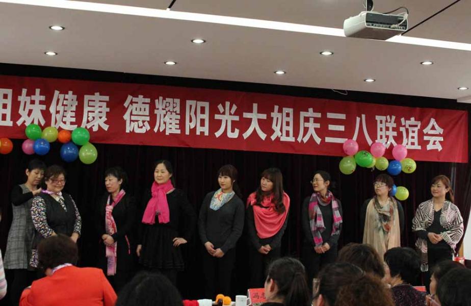 3月8日下午,陽光 大姐“情系姐妹健康 德耀陽光大姐”慶三八聯(lián)誼會(huì)在公司 三樓多媒體教室舉行。市婦聯(lián)副主席王萬英、發(fā)展部部長何海燕出席聯(lián)誼會(huì)。